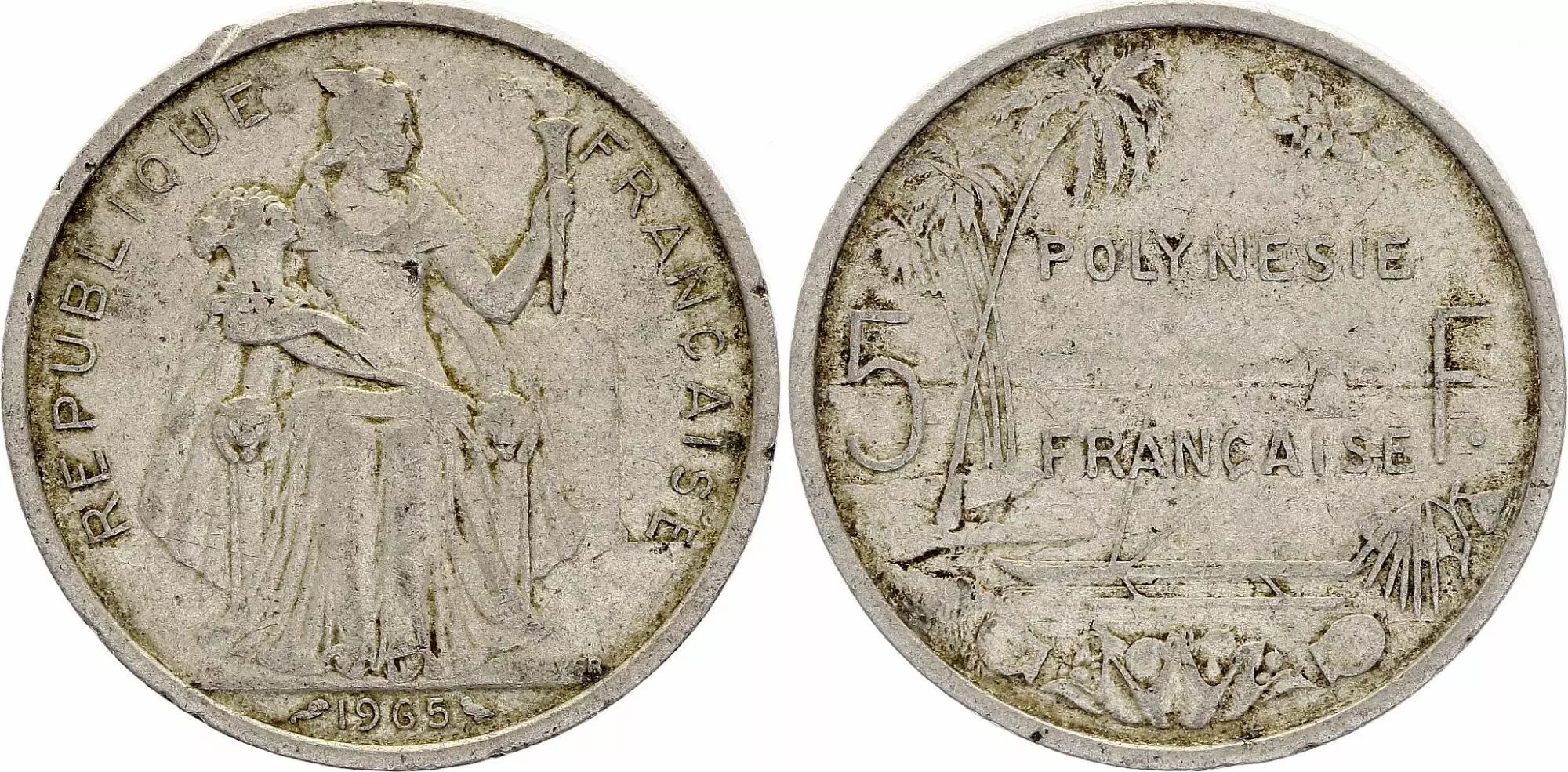 Accueil > > Polynésie Fr. 5 Francs - Liberté - Paysage - 1965