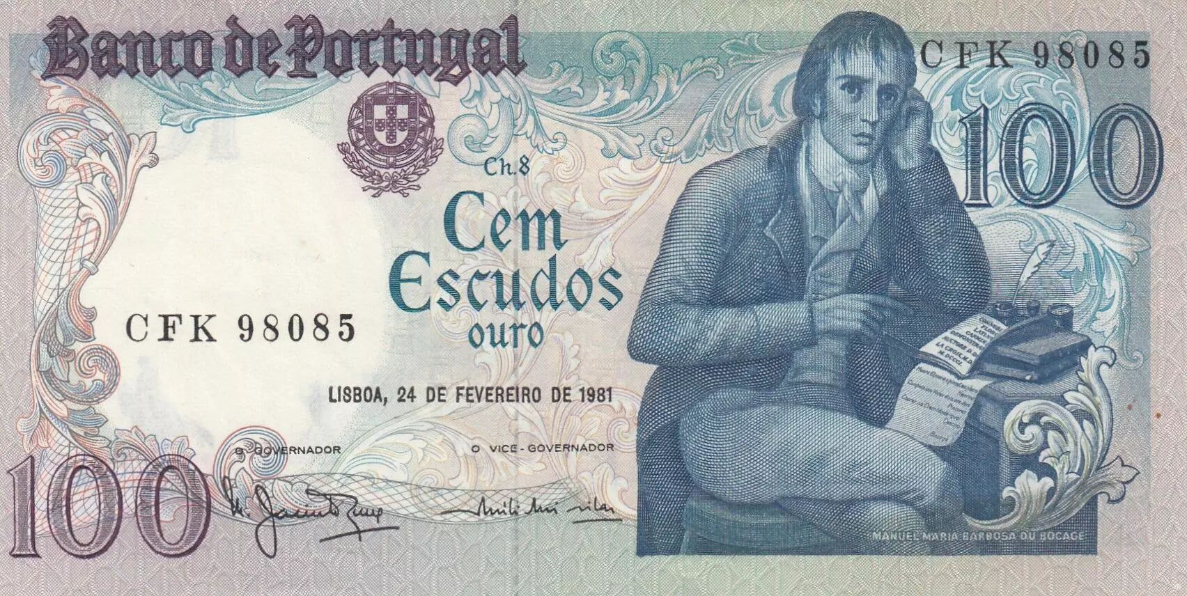 Home > World Banknotes > European Banknotes > Portugal > Portugal 100 Escudos - Manuel Barbosa Du Bocage - 24-02-1981 - Serial CFK