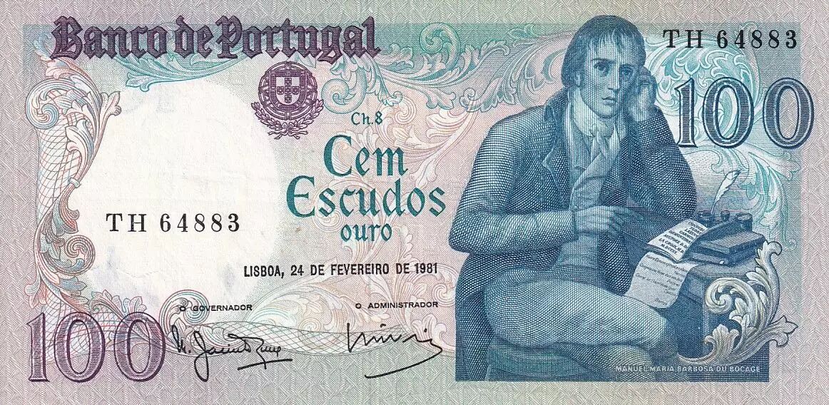 Home > > Portugal 100 Escudos - Manuel Barbosa Du Bocage - 24-02-1981 - Serial TH