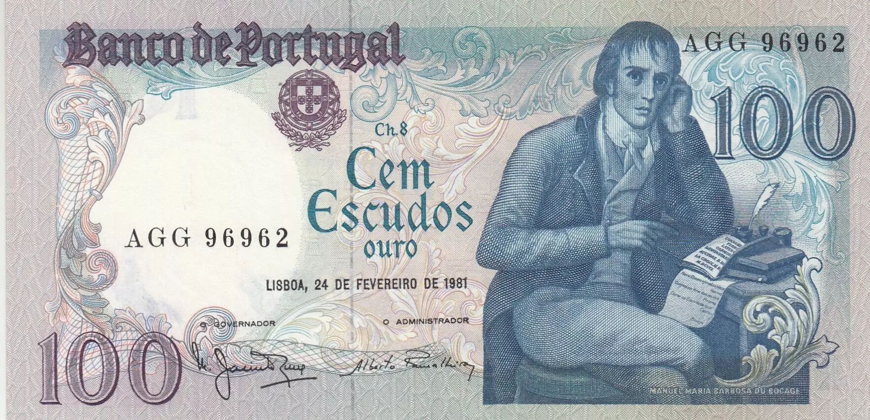 Billet Portugal 100 Escudos - Manuel Barbosa Du Bocage - 24-02-1981 - Série AGG