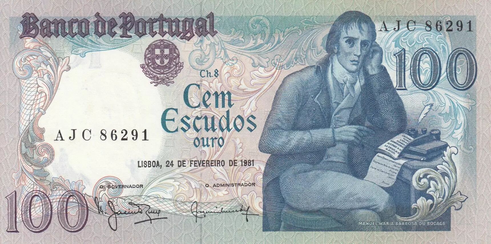 Accueil > Billets du Monde > Billets d'Europe > Portugal > Portugal 100 Escudos - Manuel Barbosa Du Bocage - 24-02-1981 - Série AJC