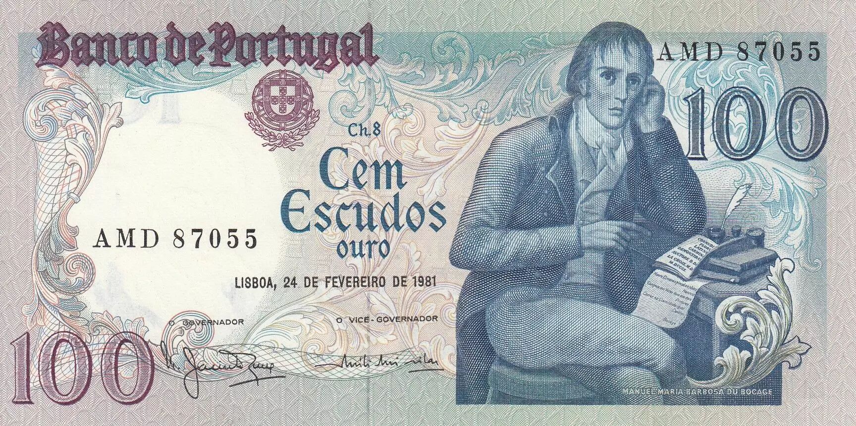 Accueil > Billets du Monde > Billets d'Europe > Portugal > Portugal 100 Escudos - Manuel Barbosa Du Bocage - 24-02-1981 - Série AMD