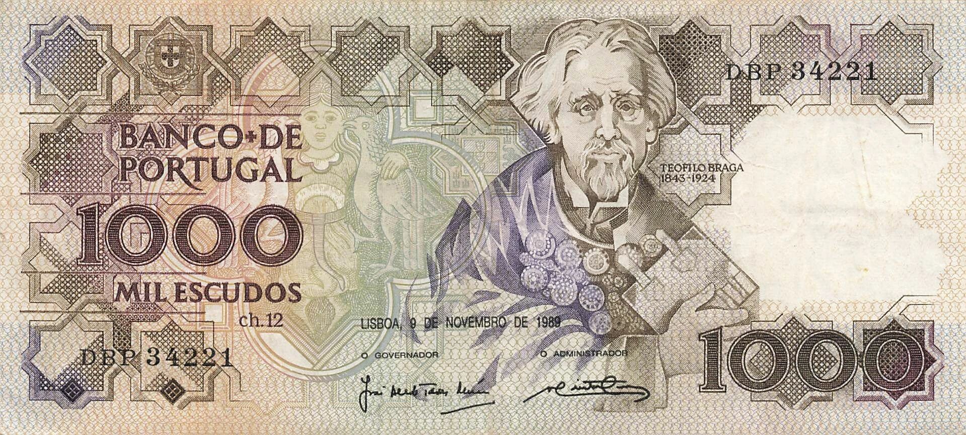 Accueil > Billets du Monde > Billets d'Europe > Portugal > Portugal 1000 Escudos - Braga - 09-11-1989 - P.181f