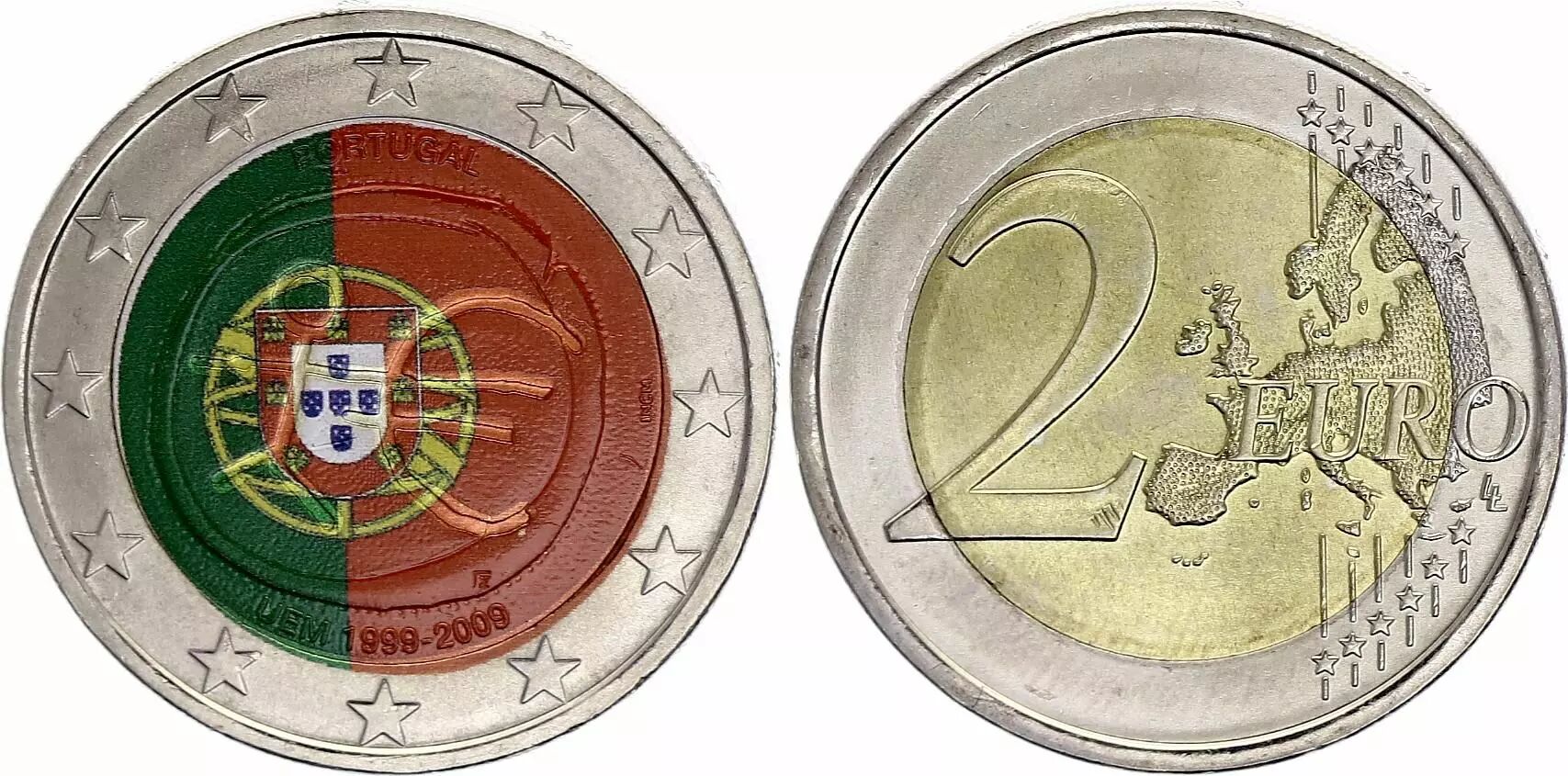 Accueil > > Portugal 2 Euros - 10 ans UEM - Colorisée - 2009 - Bimétallique