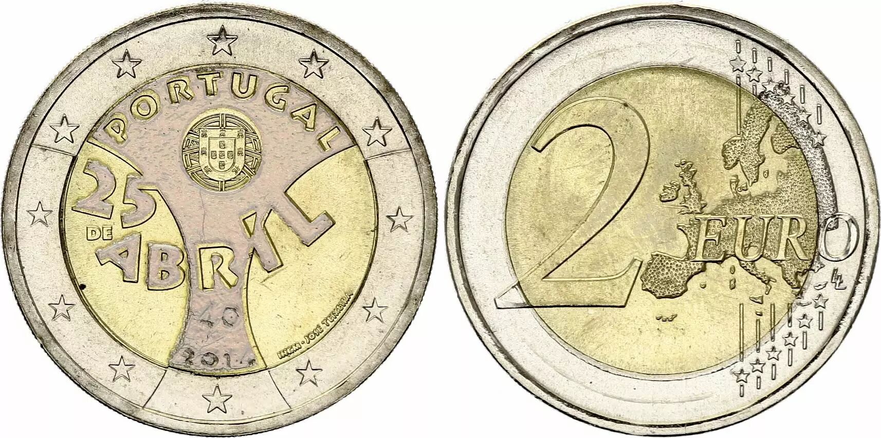 Pièce Portugal 2 Euros - 40 ans de la Révolution des ?illets - Hologramme - 2014