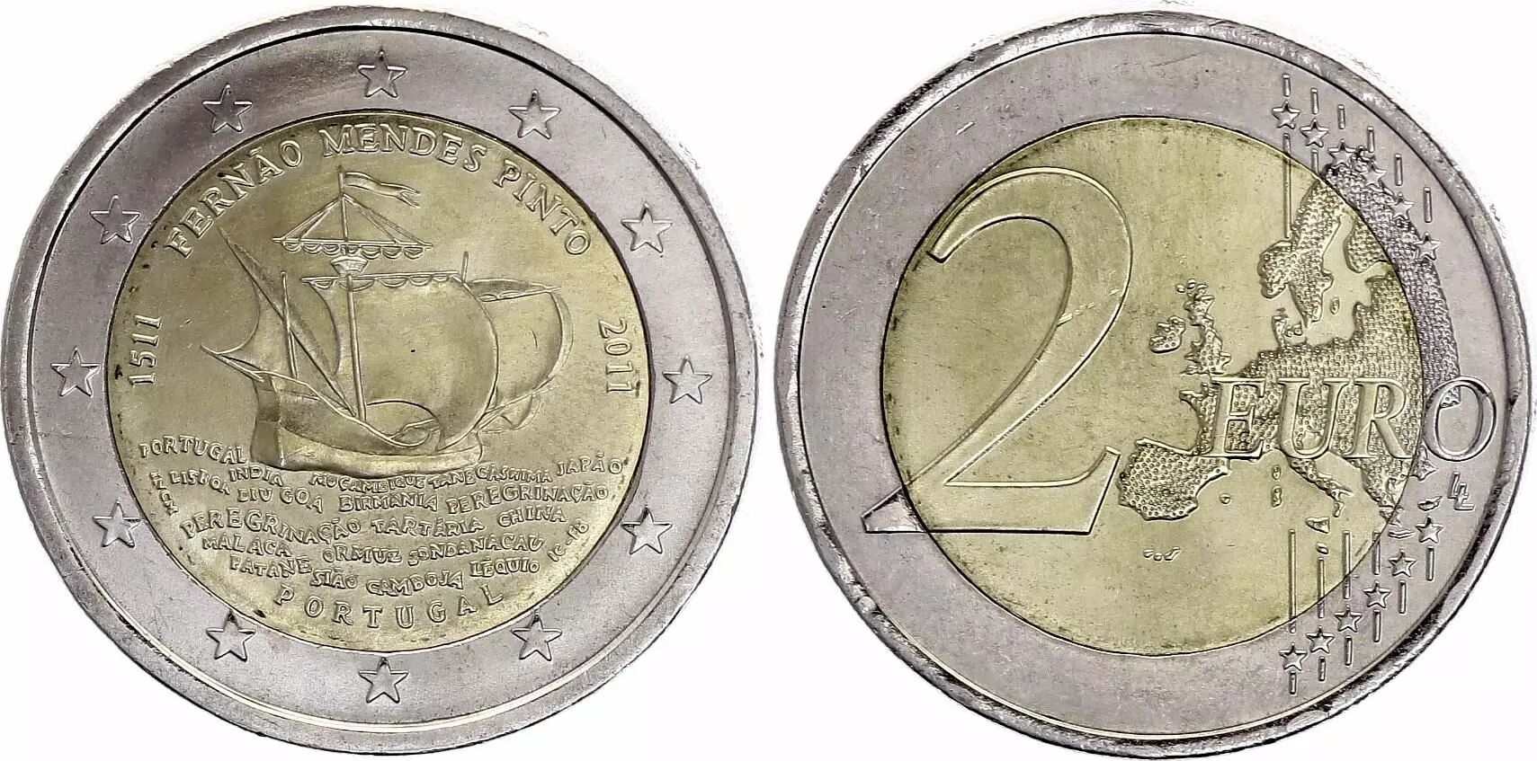 Pièce Portugal 2 Euros - 500ème anniversaire de la naissance de Fernao Mendes Pinto - 2011