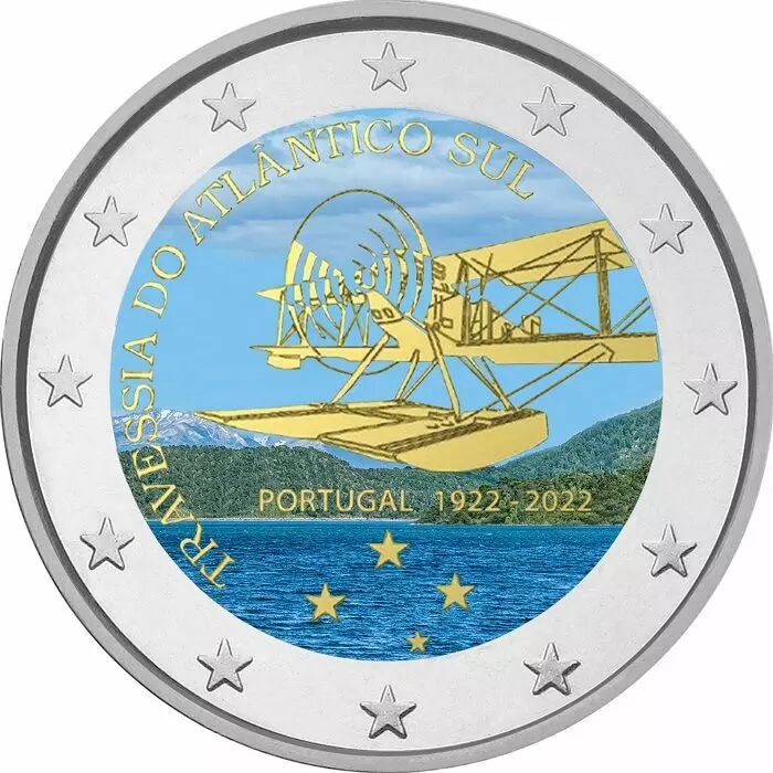 Pièce Portugal 2 EUROS COMMÉMO. COULEUR PORTUGAL 2022 - 100 ans de la première traversée par avion de l'Atlantique sud