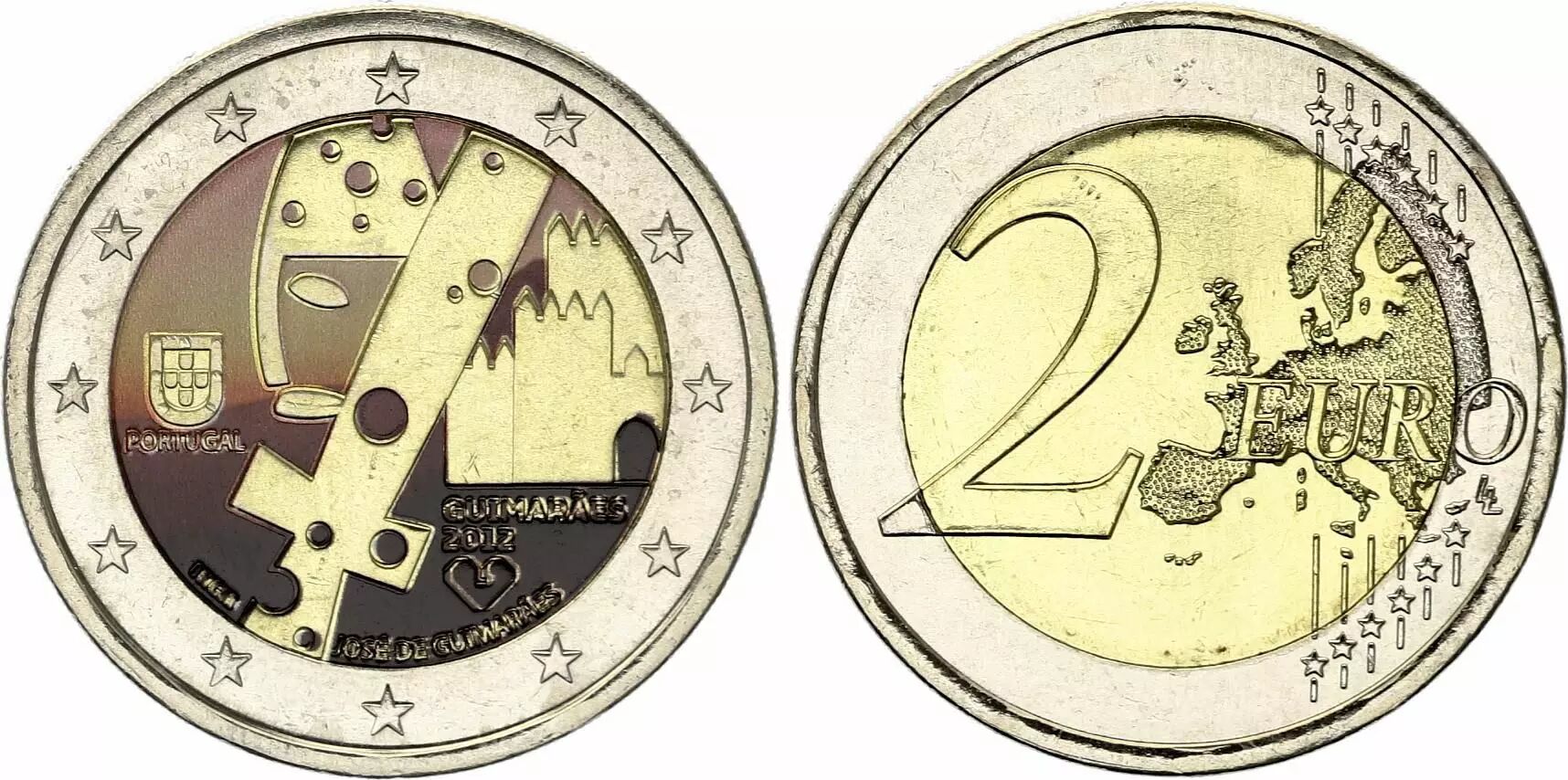 Pièce Portugal 2 Euros - Guimaraes - Colorisée - 2012