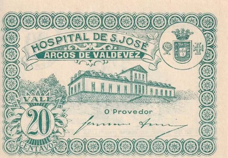 Accueil > Billets du Monde > Billets d'Europe > Portugal > Portugal 20 Centavos - Arcos de Valderez - Hospital de S. José - 1917