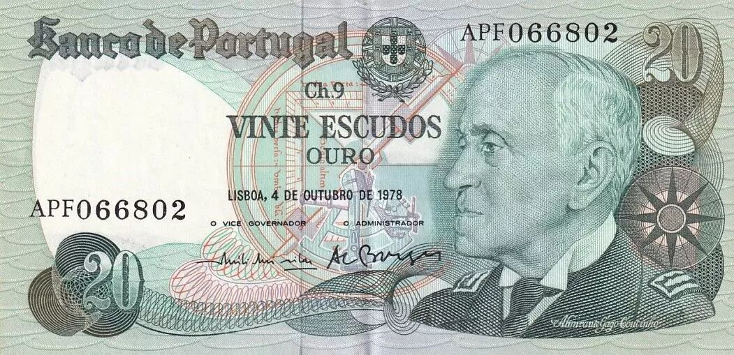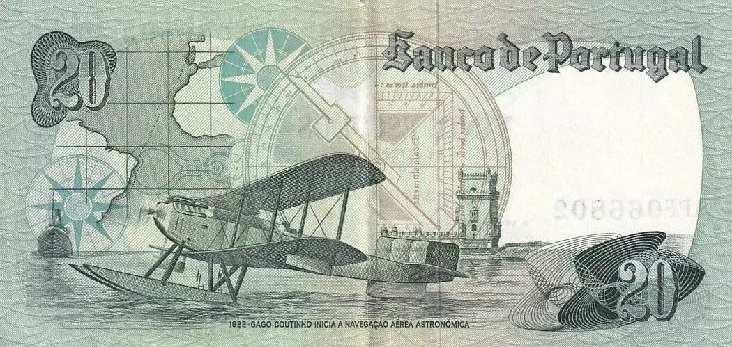 Billet Portugal 20 Escudos - Gago Coutinho - 04-10-1978 - Série APF
