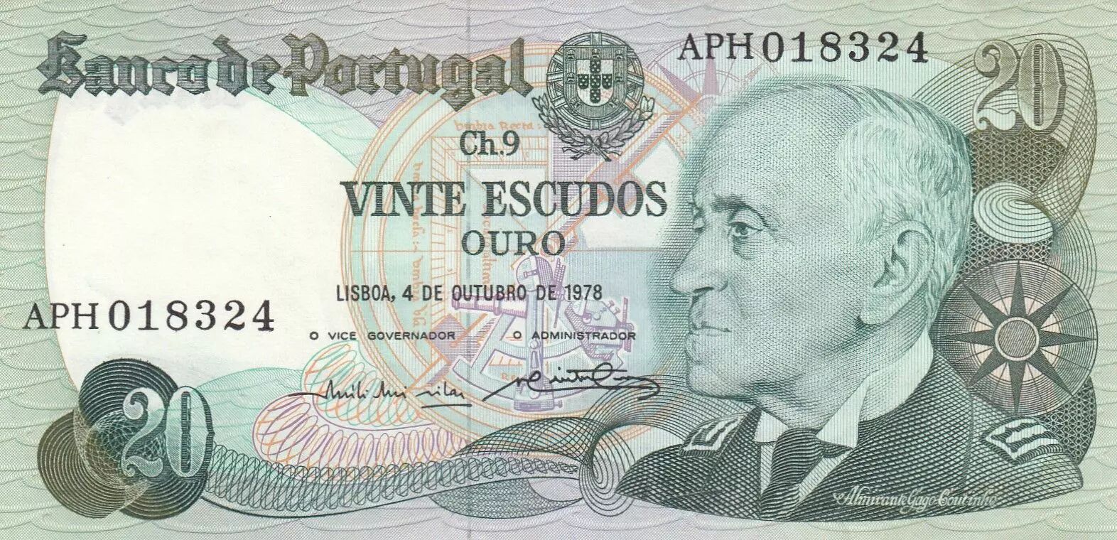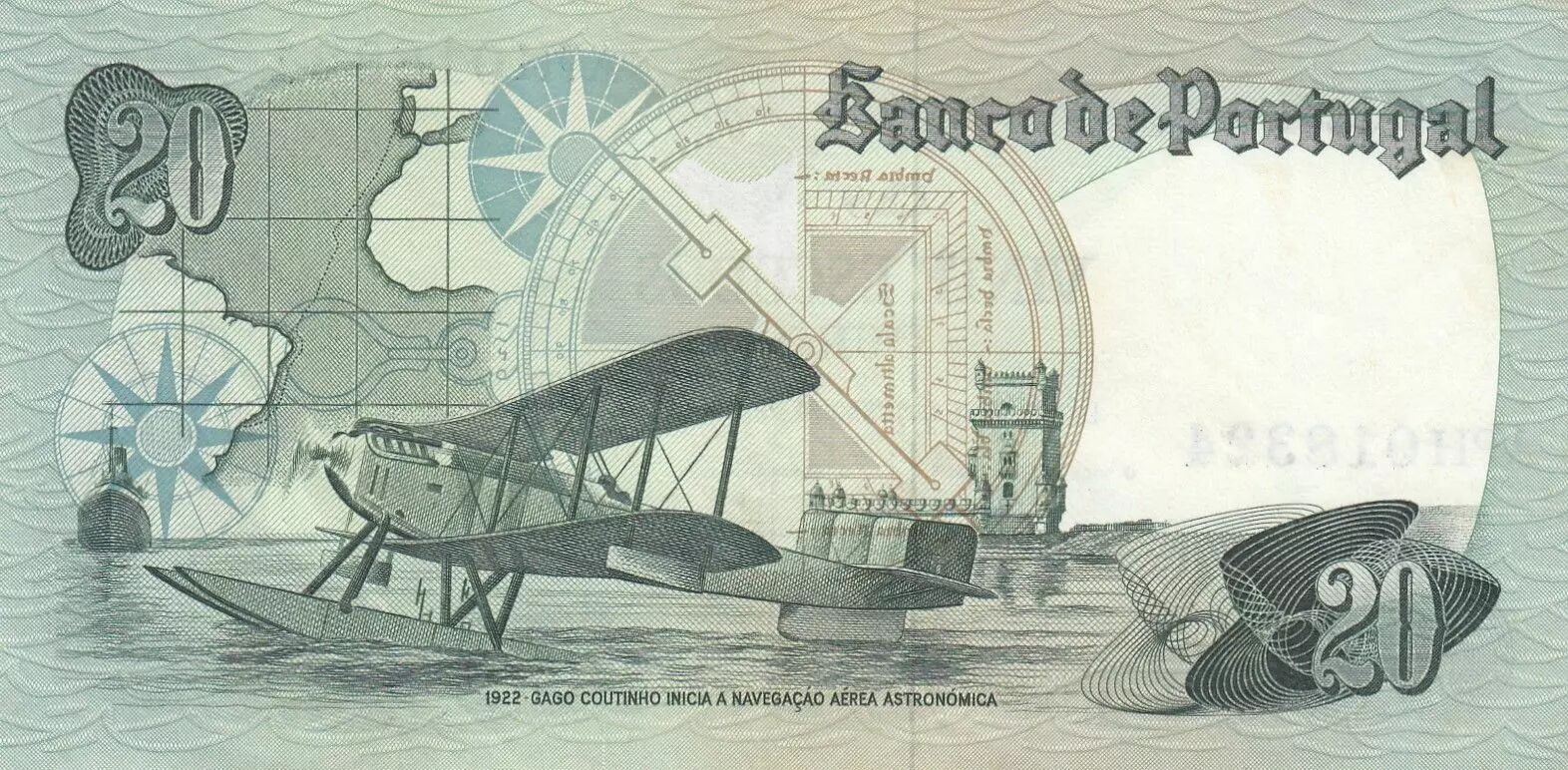 Billet Portugal 20 Escudos - Gago Coutinho - 04-10-1978 - Série APH