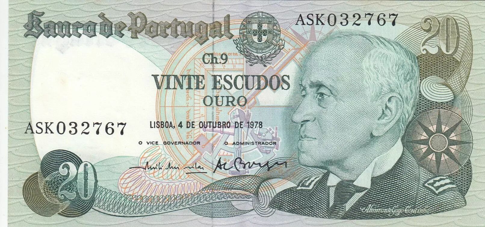 Billet Portugal 20 Escudos - Gago Coutinho - 04-10-1978 - Série ASK