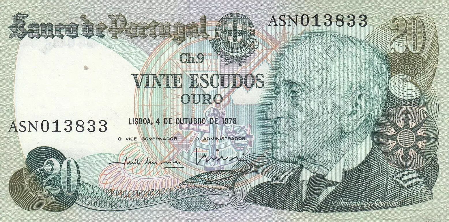 Billet Portugal 20 Escudos - Gago Coutinho - 04-10-1978 - Série ASN