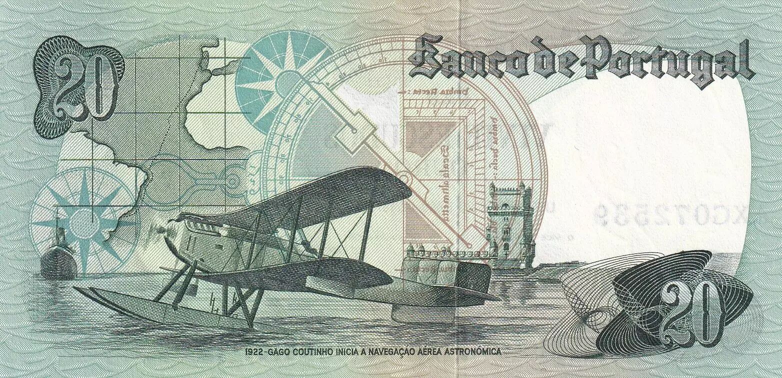 Accueil > Archivage > Portugal 20 Escudos - Gago Coutinho - 04-10-1978 - Série AXG - P.176b