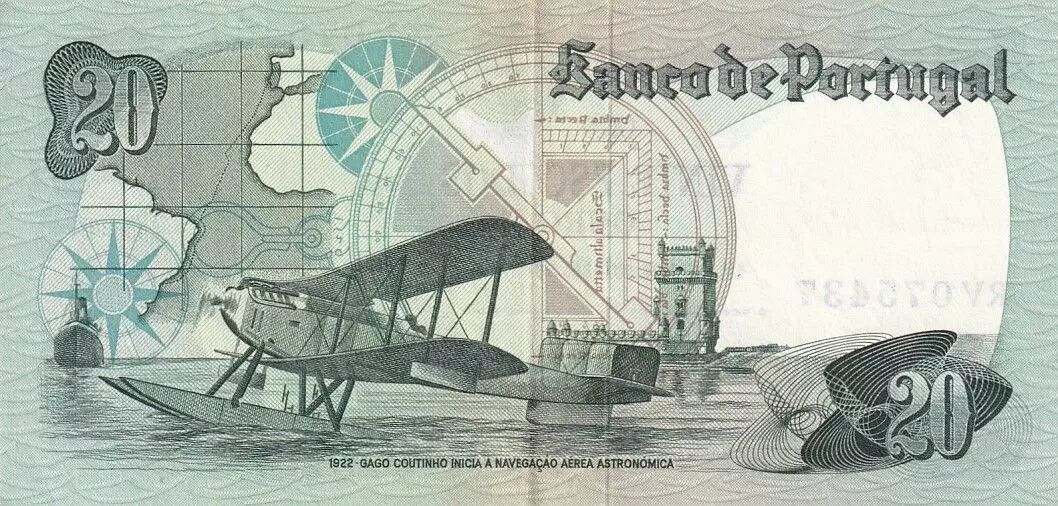 Accueil > Archivage > archivage-Billets du Monde > Portugal 20 Escudos - Gago Coutinho - 04-10-1978 - Série RV