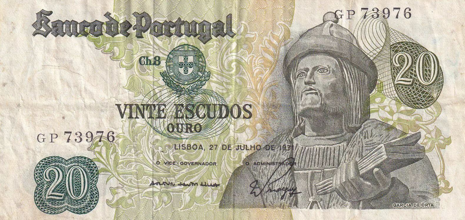 Billet Portugal 20 Escudos - Garcia de Orta - 1971 - Série GP - P.173