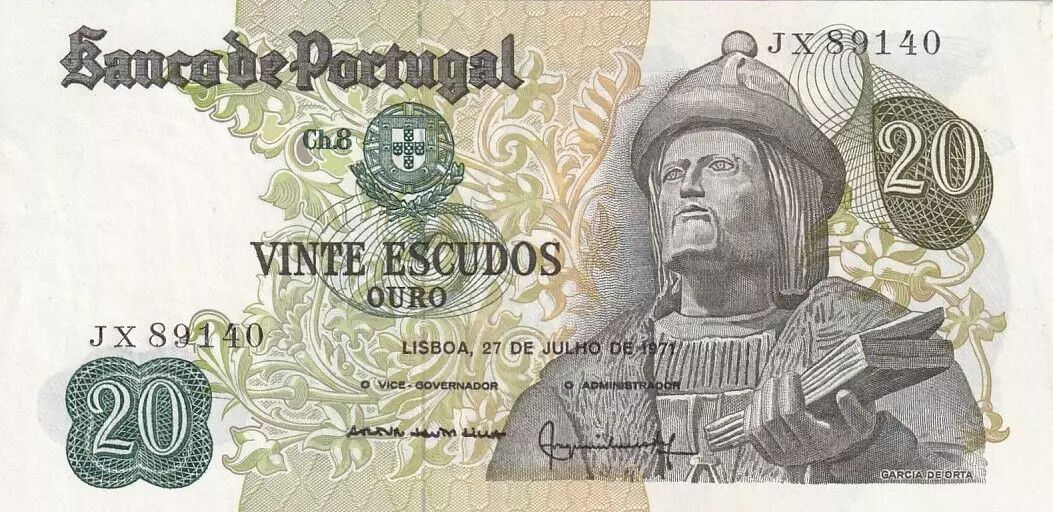Accueil > Billets du Monde > Billets d'Europe > Portugal > Portugal 20 Escudos - Garcia de Orta - 27-07-1971 - Série JX