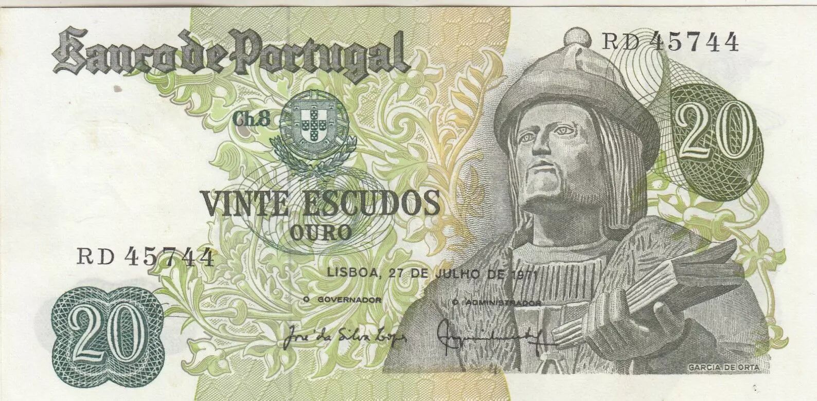 Accueil > Billets du Monde > Billets d'Europe > Portugal > Portugal 20 Escudos - Garcia de Orta - 27-07-1971 - Série RD
