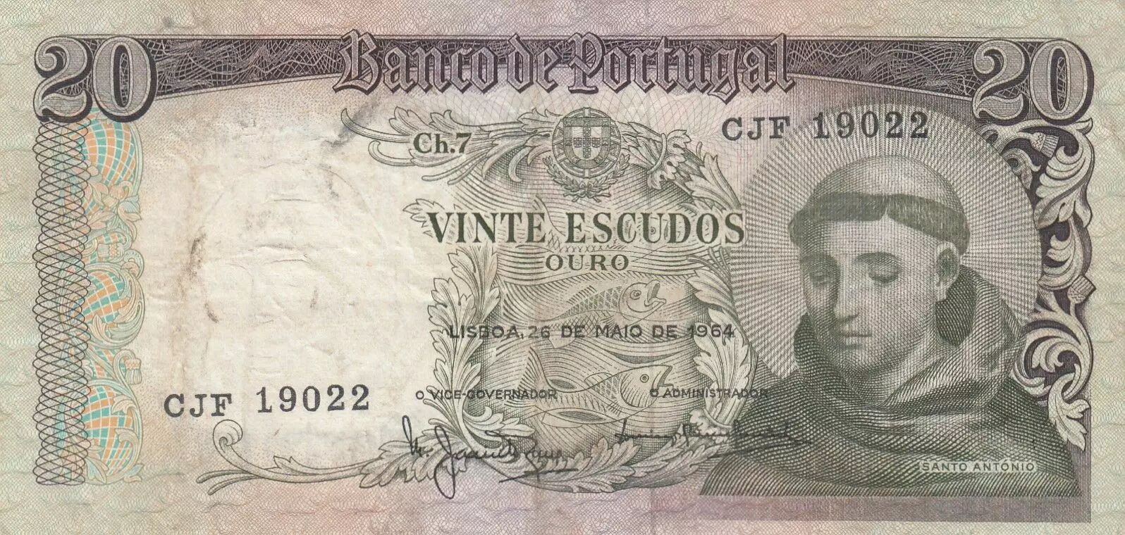 La pièce de 20 Escudos, émise le 26 mai 1964, rend hommage à Saint António, l'un des saints les plus vénérés du Portugal. Né en 1195, il est surtout reconnu comme le saint patron des marins et des perdus, ce qui reflète l'immense respect que le peuple portugais porte à la mer. Sur l'avers, le visage de Saint António est finement gravé, exprimant sa dévotion et sa spiritualité. La pièce illustre également des éléments symboliques associés à sa vie, tels que des roses ou des livres, qui évoquent ses miracles et son rôle de guide spirituel. Le revers de la pièce présente des motifs en lien avec la tradition chrétienne, renforçant son importance dans le patrimoine religieux du pays. En tant que partie de la série CJN, cette pièce met en lumière des figures historiques et religieuses importantes qui ont façonné l'identité portugaise. Elle représente un exemple frappant de la numismatique portugaise, combinant esthétique et histoire. Cette pièce est prisée par les collectionneurs pour sa valeur historique et spirituelle, symbolisant la riche culture religieuse du Portugal.