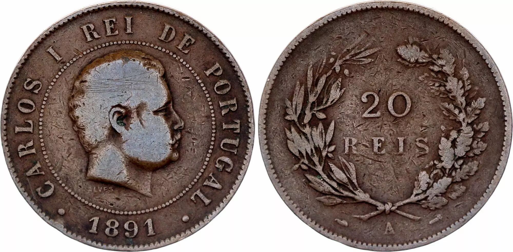 Coin Portugal 20 Reis Carlos 1st - 1891 A
