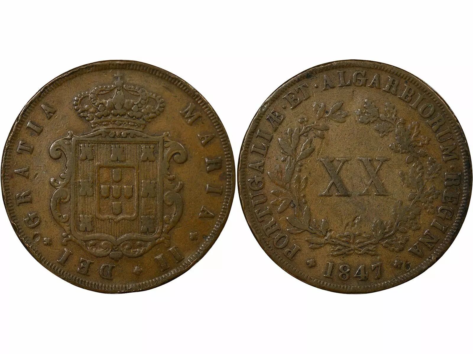 Home > > Portugal 20 Réis - Portugal - Maria II - 1847 Lisbon