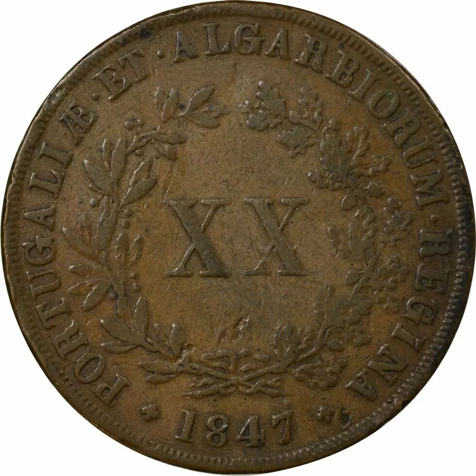 Coin Portugal 20 Réis - Portugal - Maria II - 1847 Lisbon