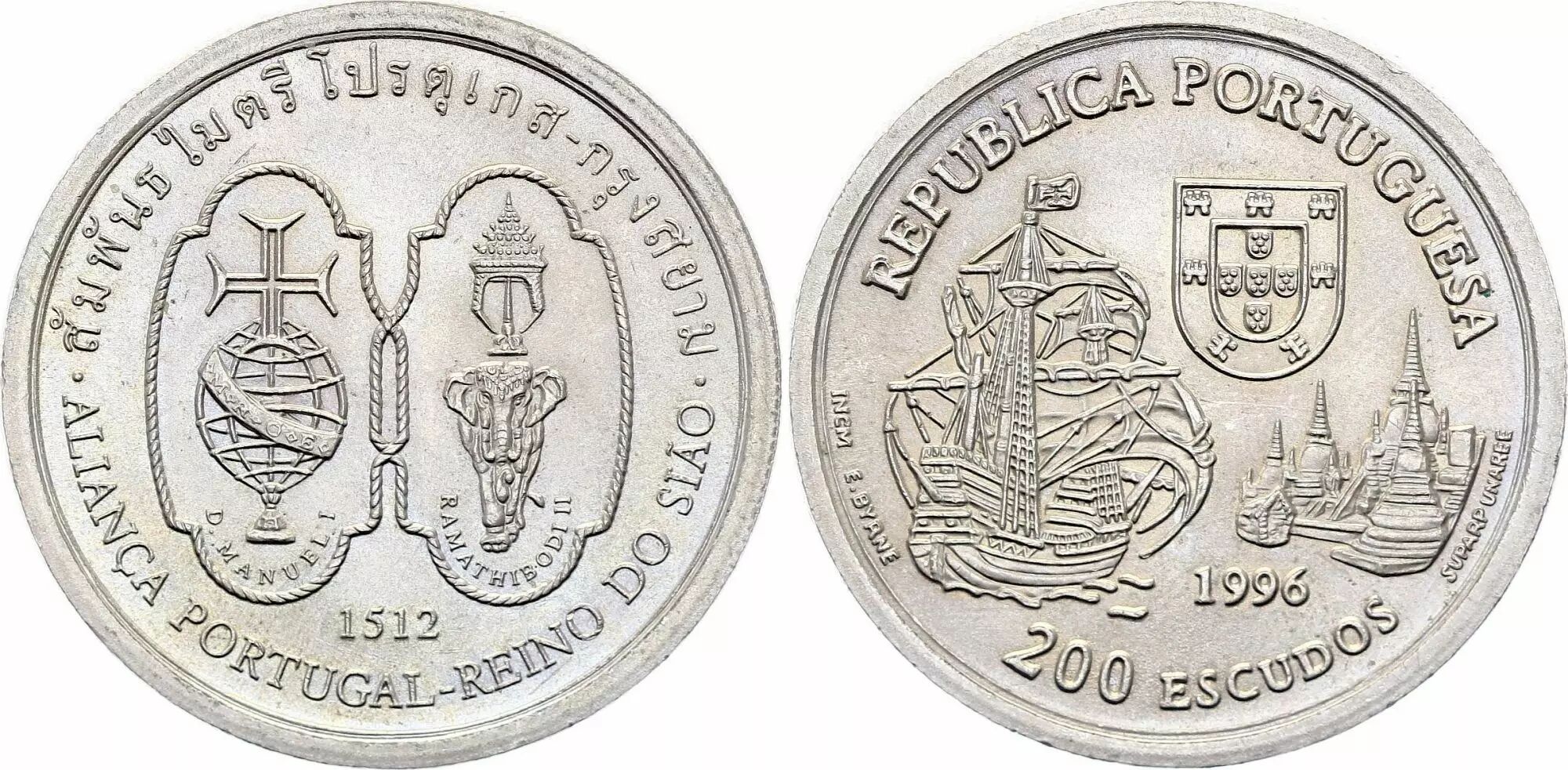 Accueil > Monnaies du monde > Monnaies d'Europe > Portugal > Portugal 200 Escudos - Alliance entre le Siam et le Portugal - 1996