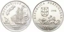 La pièce de 200 Escudos du Portugal, émise en 1998, célèbre un événement marquant de l'histoire portugaise : la découverte du Mozambique. Sur l'avers de la pièce, des motifs évoquent les paysages emblématiques et les richesses naturelles du Mozambique, illustrant la richesse de sa culture et de son patrimoine. Cette pièce rend hommage à l'exploration portugaise qui a conduit à l?établissement de relations commerciales et culturelles entre le Portugal et ce pays africain.