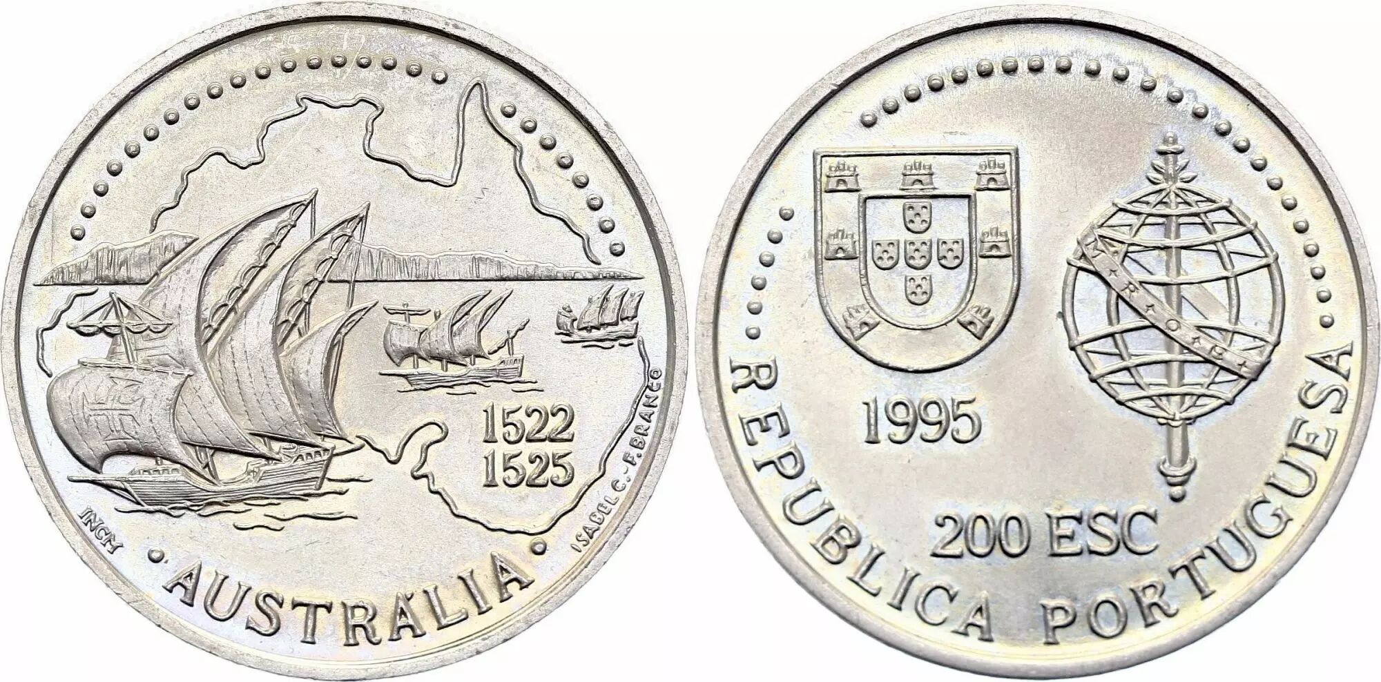 Home > World Coins > European Currencies > Portugal > Portugal 200 Escudos - Discovery of Australia - 1995