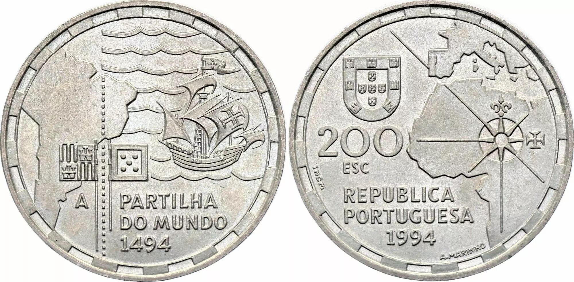 Pièce Portugal 200 Escudos - Division du monde - 1994