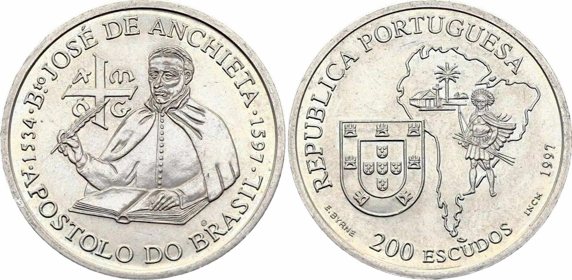 Home > World Coins > European Currencies > Portugal > Portugal 200 Escudos - José de Anchieta - 1997