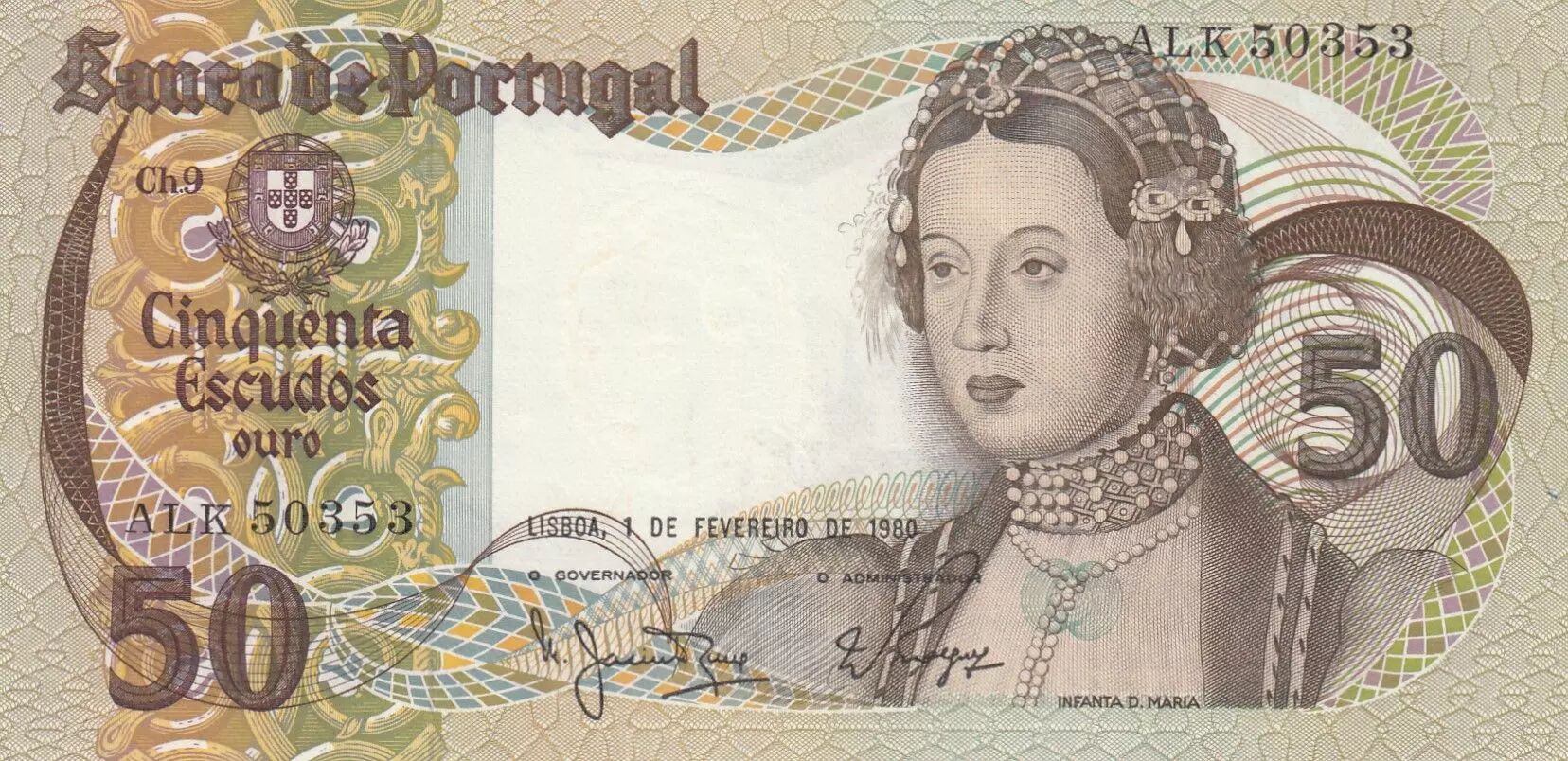 Accueil > Archivage > archivage-Billets du Monde > Portugal 50 Escudos - Infante D. Maria - 01-02-1980 - Série ALK