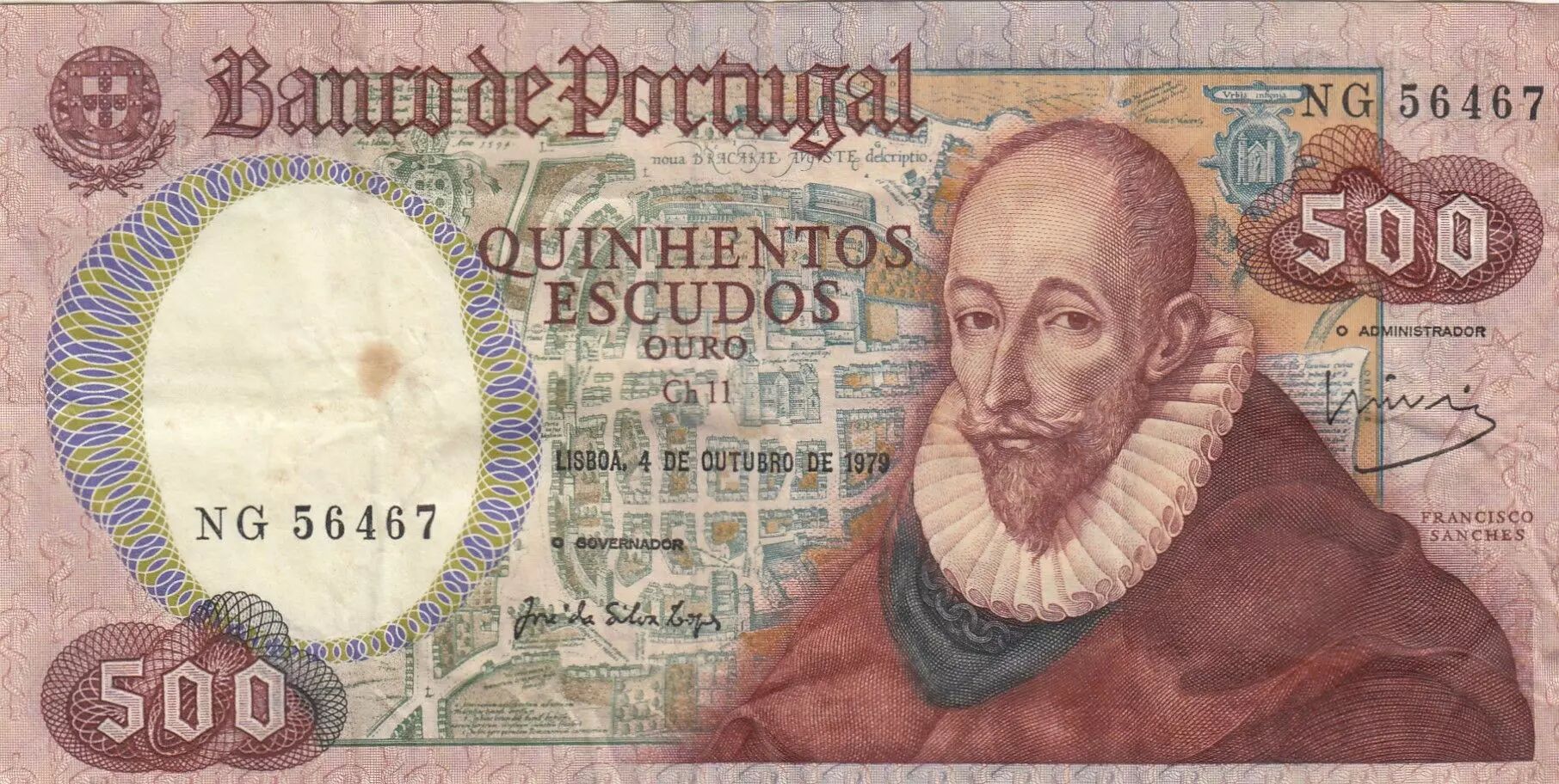Banknote Portugal 500 Escudos - Francisco Sanches - Braga - 04-10-1979 - Various serial
