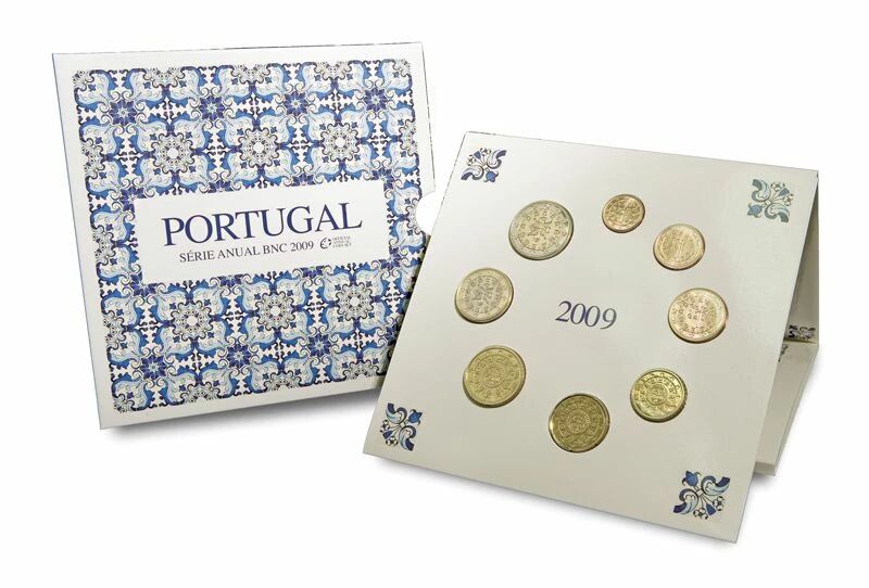 Le coffret BU Euro du Portugal, daté de 2009, regroupe l'ensemble des huit coupures de monnaie en euro émises par le pays pour cette année spécifique. Chaque pièce, allant de 1 centime à 2 euros, est frappée avec une qualité Brillant Universel (BU), ce qui leur confère un aspect soigné et une qualité de frappe supérieure à celle des pièces en circulation courante.