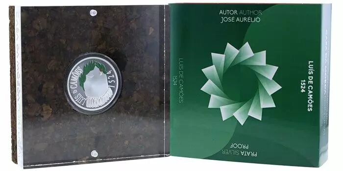 Luiz Vaz de Camões, né en 1524, est honoré à l'occasion du 500e anniversaire de sa naissance. Son influence sur la littérature portugaise, avec des œuvres telles que : Os Lusíadas et Rimas , est soulignée. La biographie incertaine du poète, entre bannissement et voyage, a façonné son œuvre. La Monnaie émet une pièce commémorative, dessinée par José Aurélio, sur laquelle figurent le visage de Camões et les armoiries au revers.