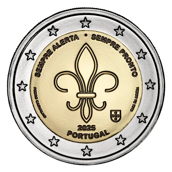 Le Portugal rend hommage au scoutisme international avec une pièce conçue par Pedro Carvalho. Ornée de la fleur de lys emblématique et des devises « Toujours alerte » et « Toujours prêt », elle célèbre les valeurs de leadership, de responsabilité et de camaraderie chères aux scouts du monde entier.
