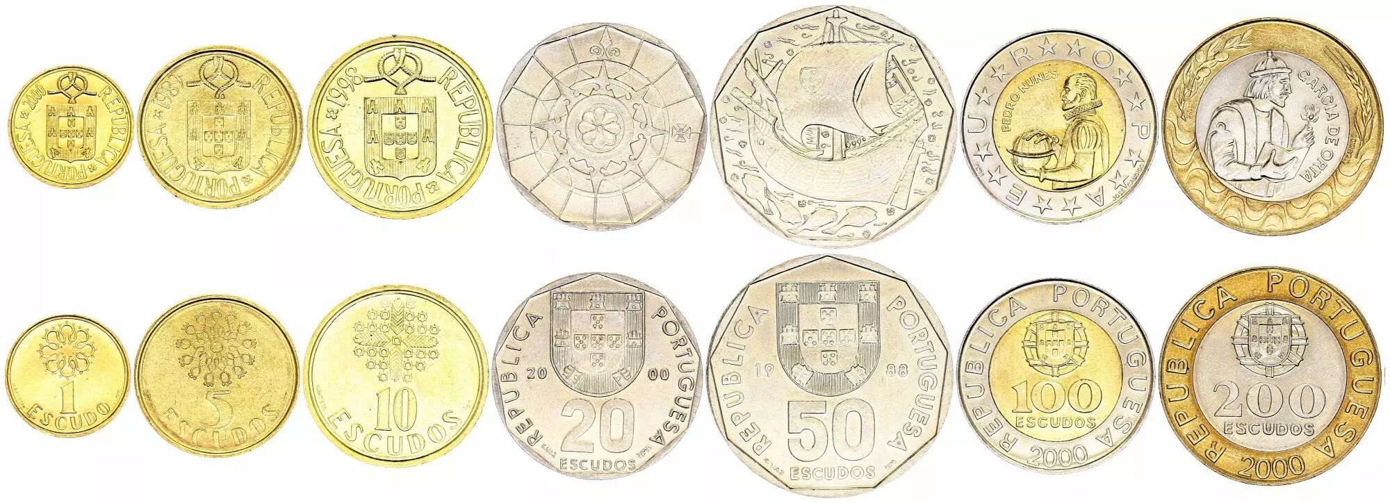 Inclus une pièce de 1, 5, 10, 20, 50, 100, 200 Escudos