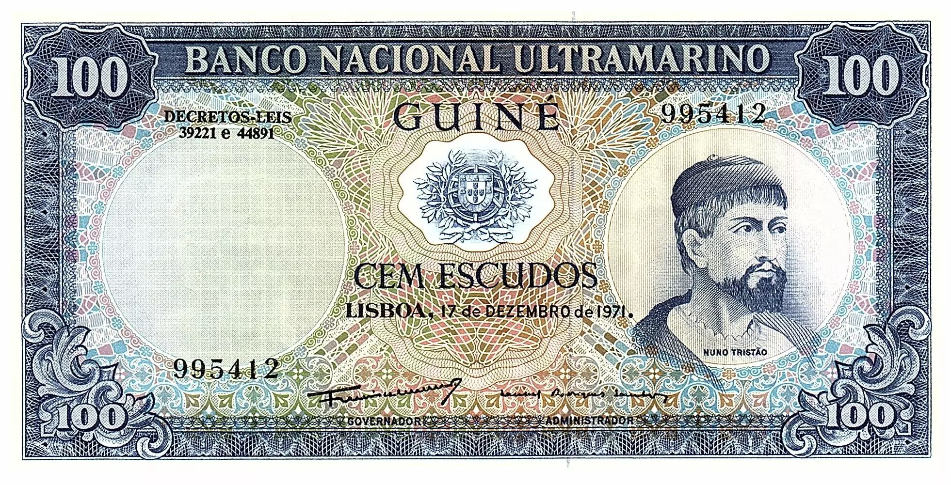 Home > > Portuguese Guinea 100 Escudos 1971 - Nuno Tristao, Woman and boat - Portuguese Colony
