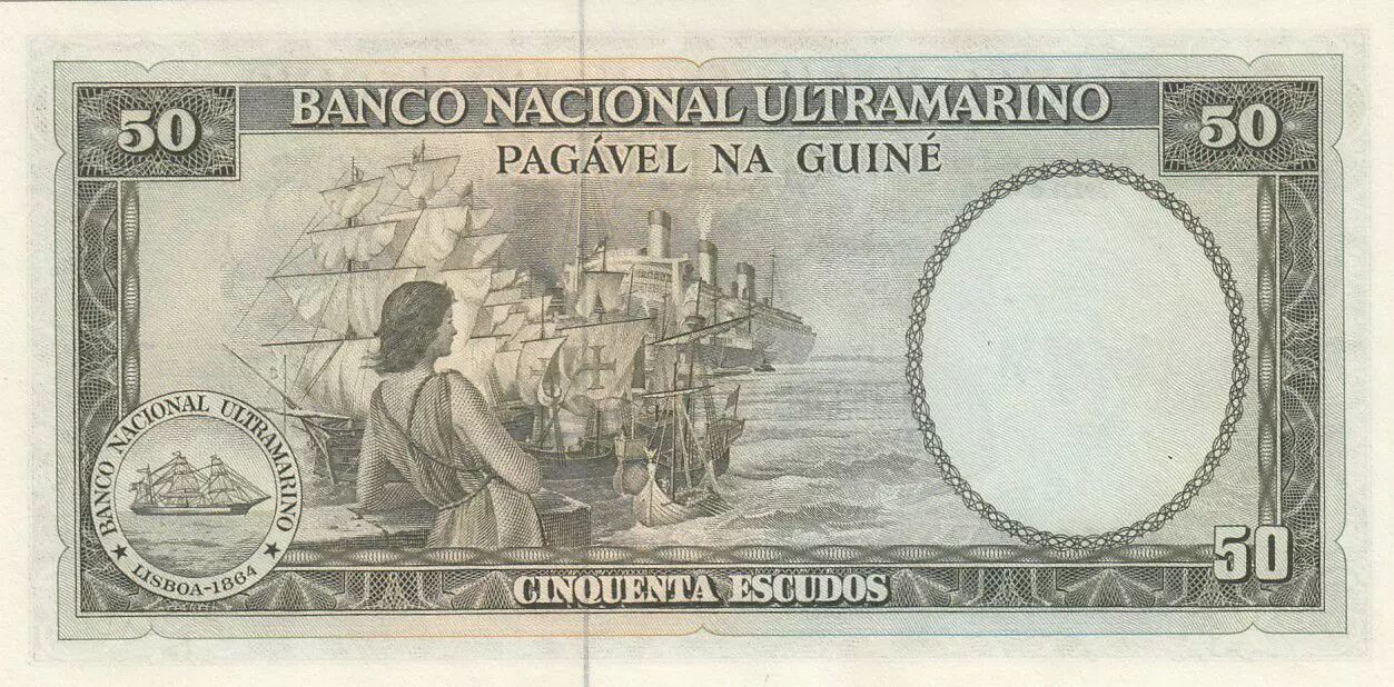 Banknote Portuguese Guinea 50 Escudos 1971 - Nuno Tristao - Woman and boat - Portuguese Colony