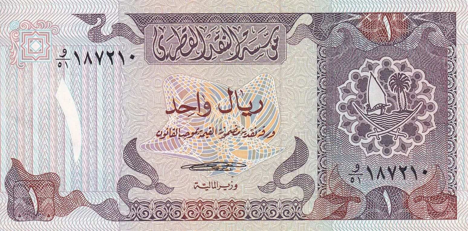 Banknote Qatar 1 Riyal - Arms - Boat - ND (1985) - P.13