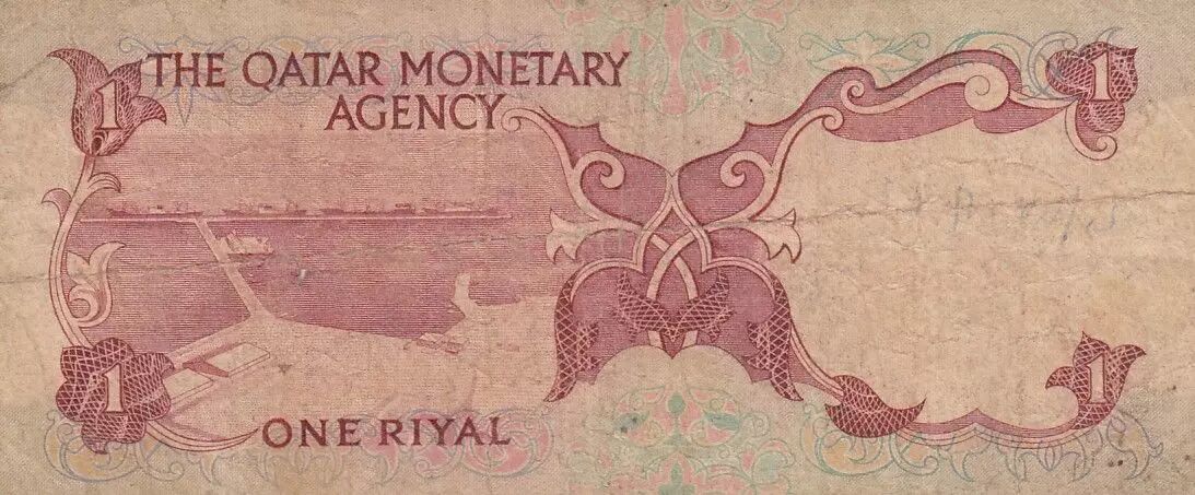 Banknote Qatar 1 riyal - Arms - Doha's port - 1973