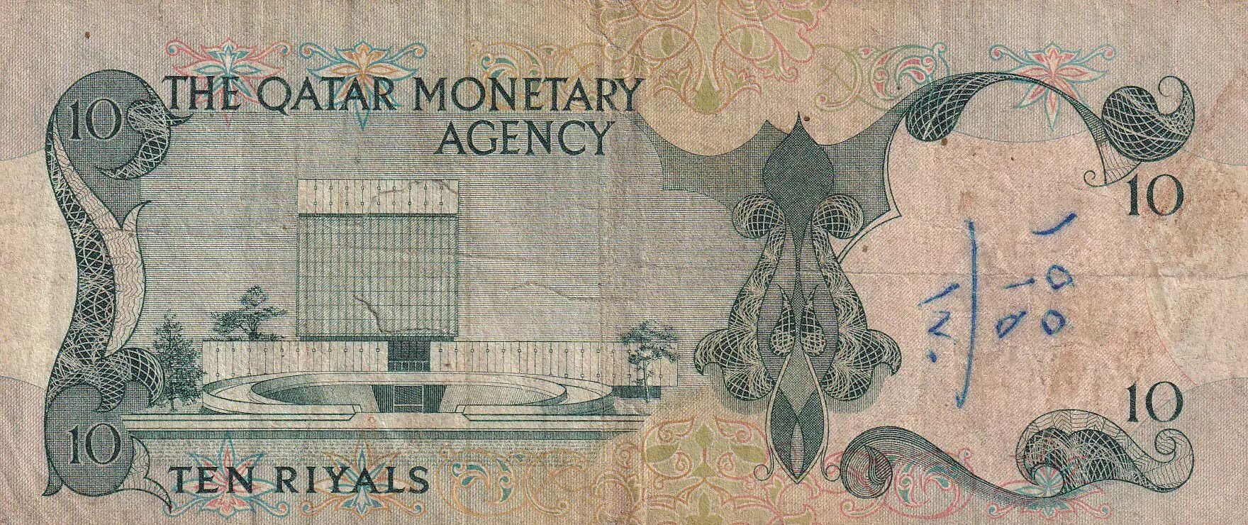 Home > World Banknotes > Asian Banknotes > Qatar > Qatar 10 Riyals - Coat of arms - ND (1973) - P.3a