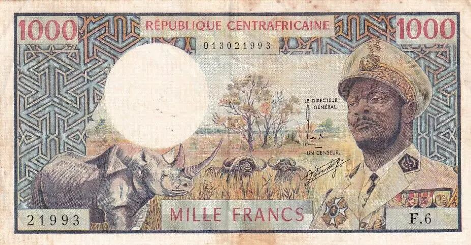 Accueil > Archivage > Rép. Centrafricaine 1000 Francs - Bokassa - ND (1974) - Série F.6