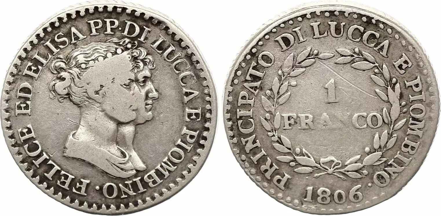 Pièce République de Lucques 1 Franco Elisa et Felix - 1806 - Argent