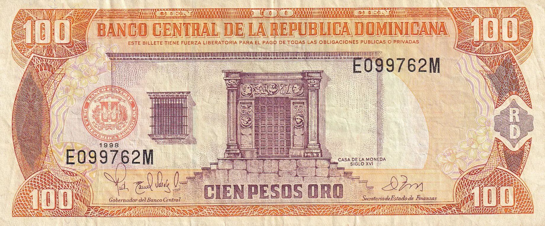 Billet République dominicaine 100 Pesos de Oro - Maison de la Monnaie - 1998 - Série EM - P.156b
