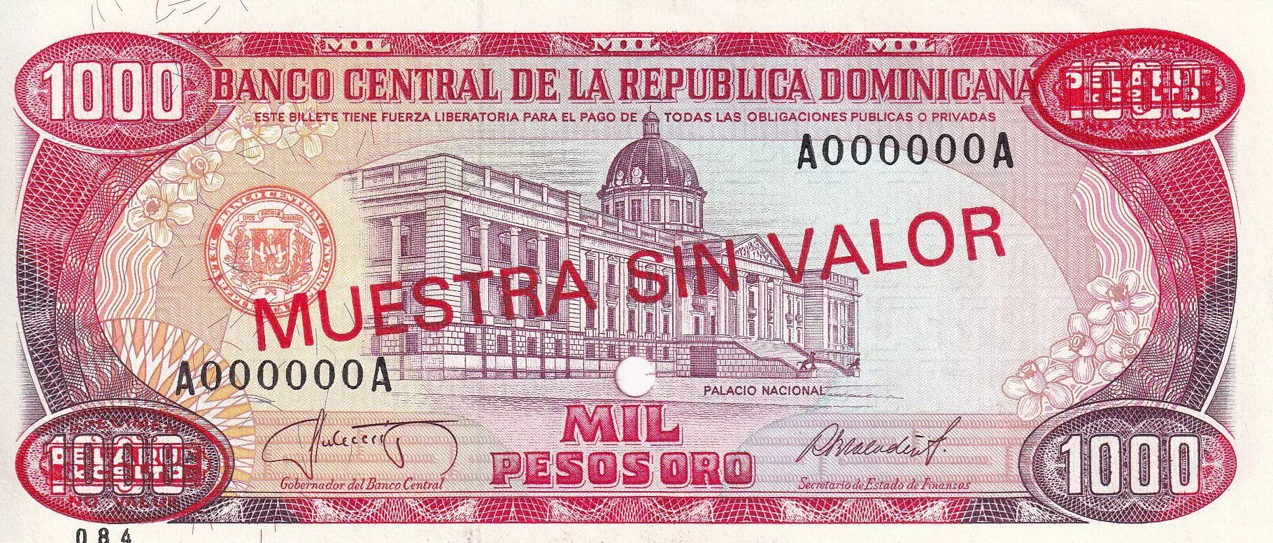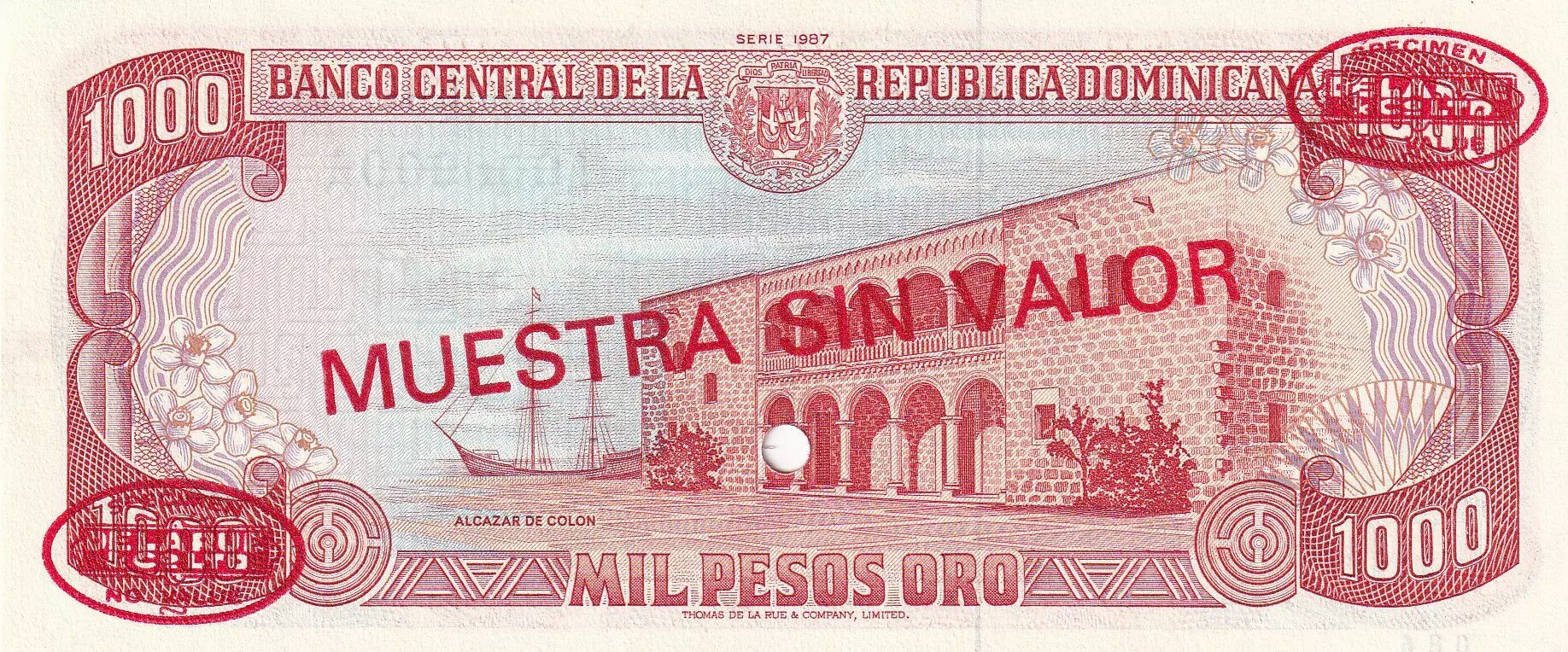 Billet République dominicaine 1000 Peso de Oro - Palace national - Alcazar de Colon - Spécimen - 1987 - P.124s2