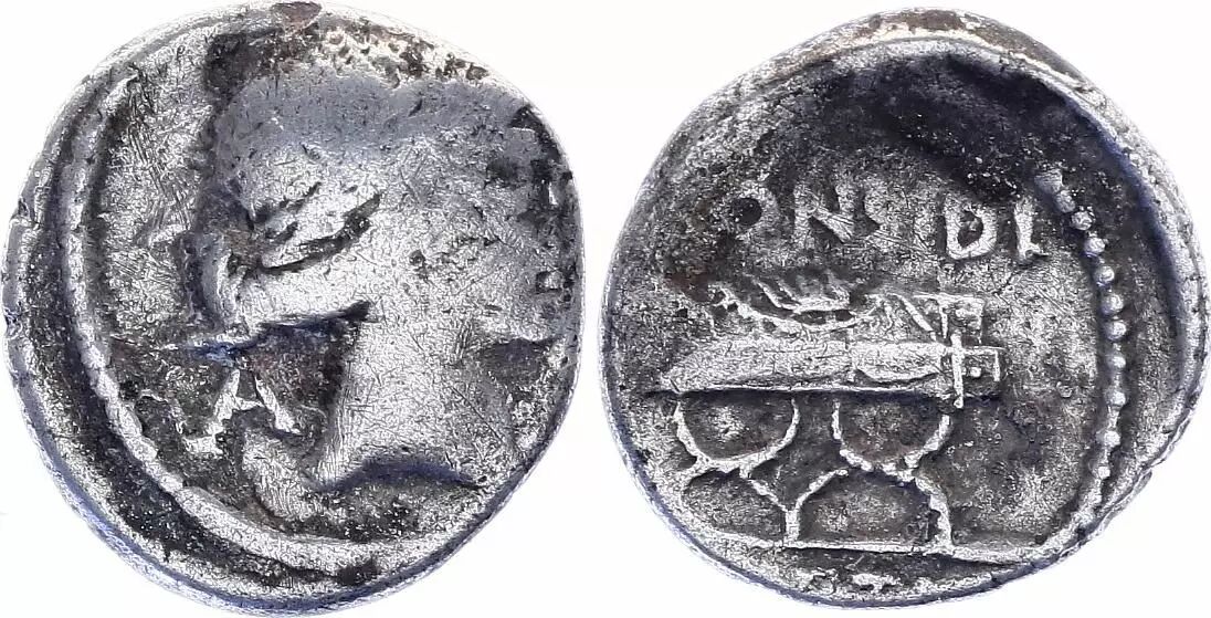 Ce denier de la République Romaine, frappé en l'an -46, appartient à la gens Considia. Il s'agit d'une pièce en argent, dont le poids est de 3.57 grammes et le diamètre de 17 millimètres.