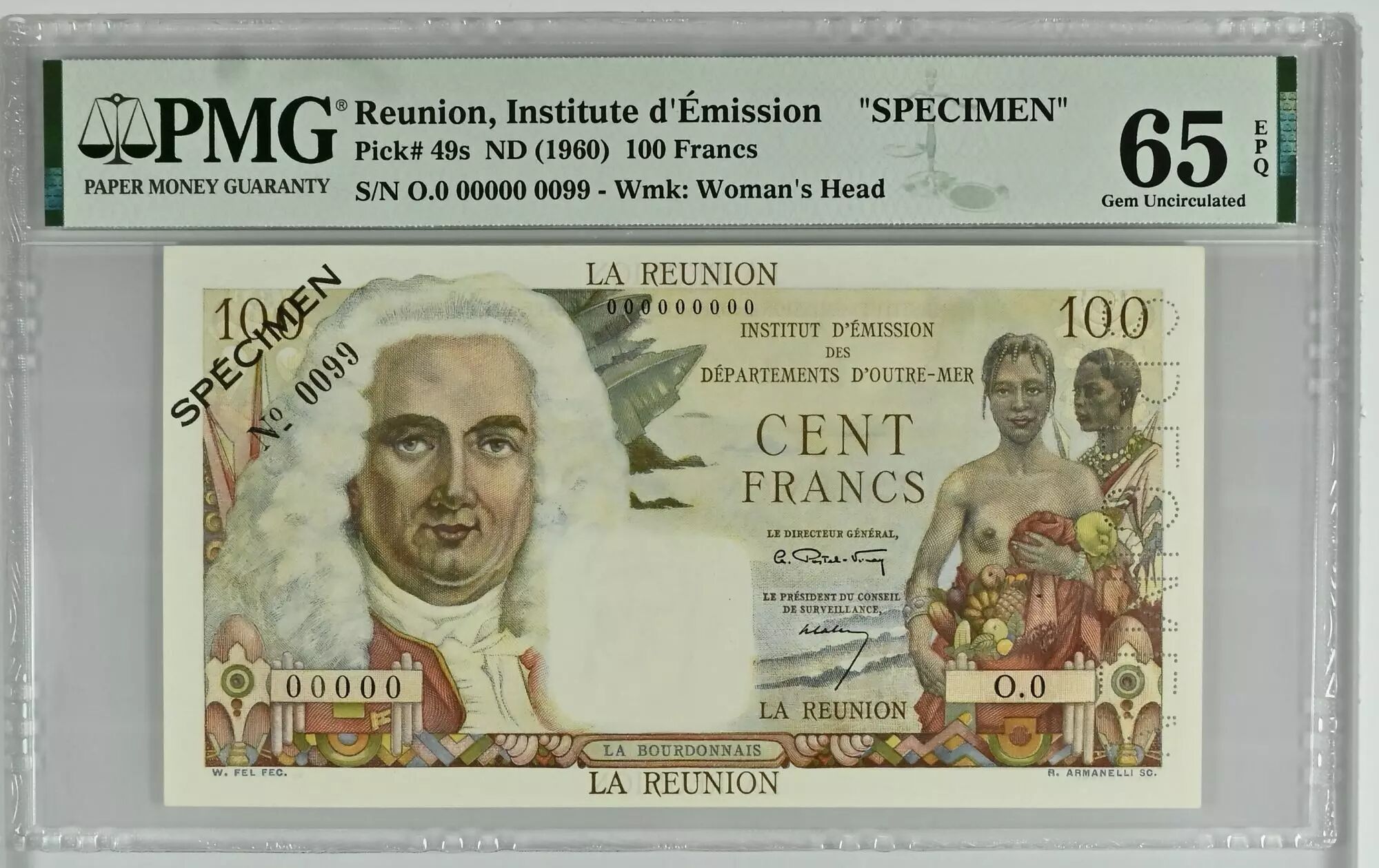 Billet Réunion 100 Francs - La Bourdonnais - 1960 - Spécimen - Kol.440.1 - PMG 65 EPQ