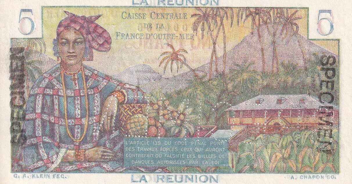Billet Réunion 5 Francs - Bougainville - 1946 - Spécimen - NEUF - Kol.432.1