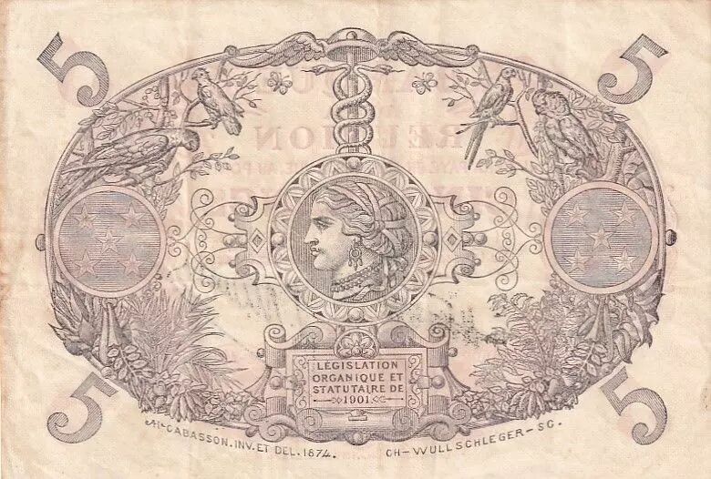 Accueil > Archivage > Réunion 5 Francs Cabasson, type 1901 Rouge (1938) Série E.163
